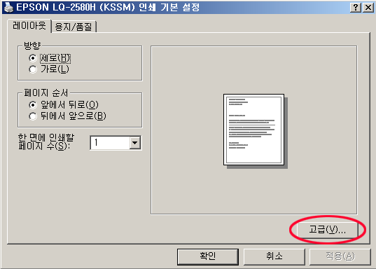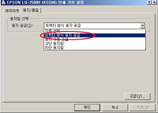 ÇÁ¸°ÅͼӼº -> <Àμâ±âº»¼³Á¤>¹öư Ŭ¸¯ -> [¿ëÁö/ǰÁú] ¼±Åà -> ¿ëÁö°ø±ÞÀ» Æ®·¢ÅÍ ¹æ½Ä ¿ëÁö °ø±ÞÀ¸·Î ¼³Á¤