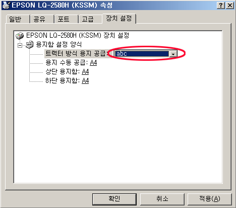 ÇÁ¸°ÅͼӼº -> ÀåÄ¡¼³Á¤ -> Æ®·¢Å͹æ½Ä¿ëÁö¸¦ »õ·Î¸¸µç ¿ëÁöÀ̸§(abc)·Î ¼±ÅÃ